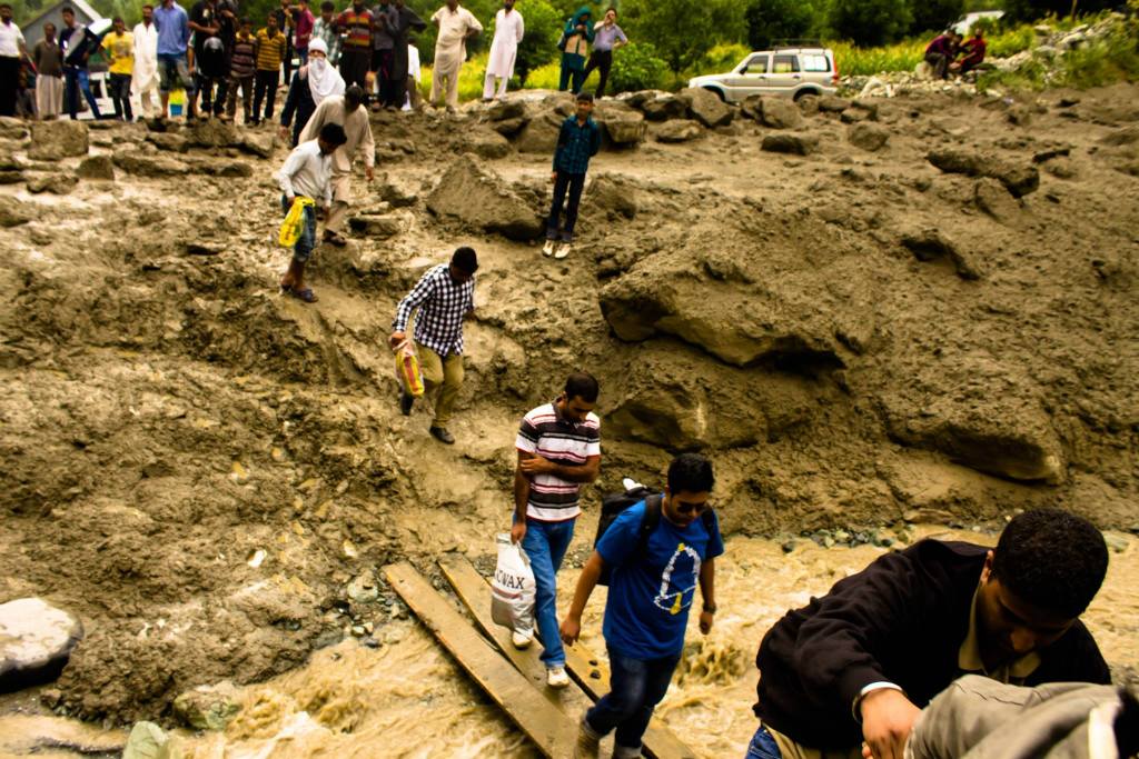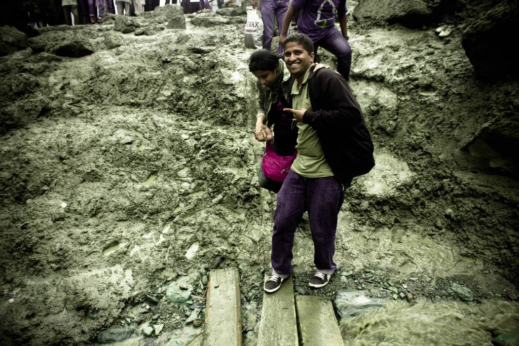 The journey to Leh kicked off with more drama than any of us had signed up for. We left early, trying to dodge the curfew. Just when we thought we were in the clear, news hit, a landslide up ahead. So there we were, stuck in the middle of nowhere for 4 – 5 hours, a bunch of clueless rookies wondering if we’d made the worst decision of our lives. Ramazang (our savior through this trip). He somehow managed to arrange another vehicle waiting on the other side. The catch? We had to pick up all our boria-bistar, sling it on our backs, and literally walk across the landslide on a wobbly wooden plank. Peeche curfew, aage landslide — too big an adventure for us rookies, but that’s exactly what made it unforgettable.